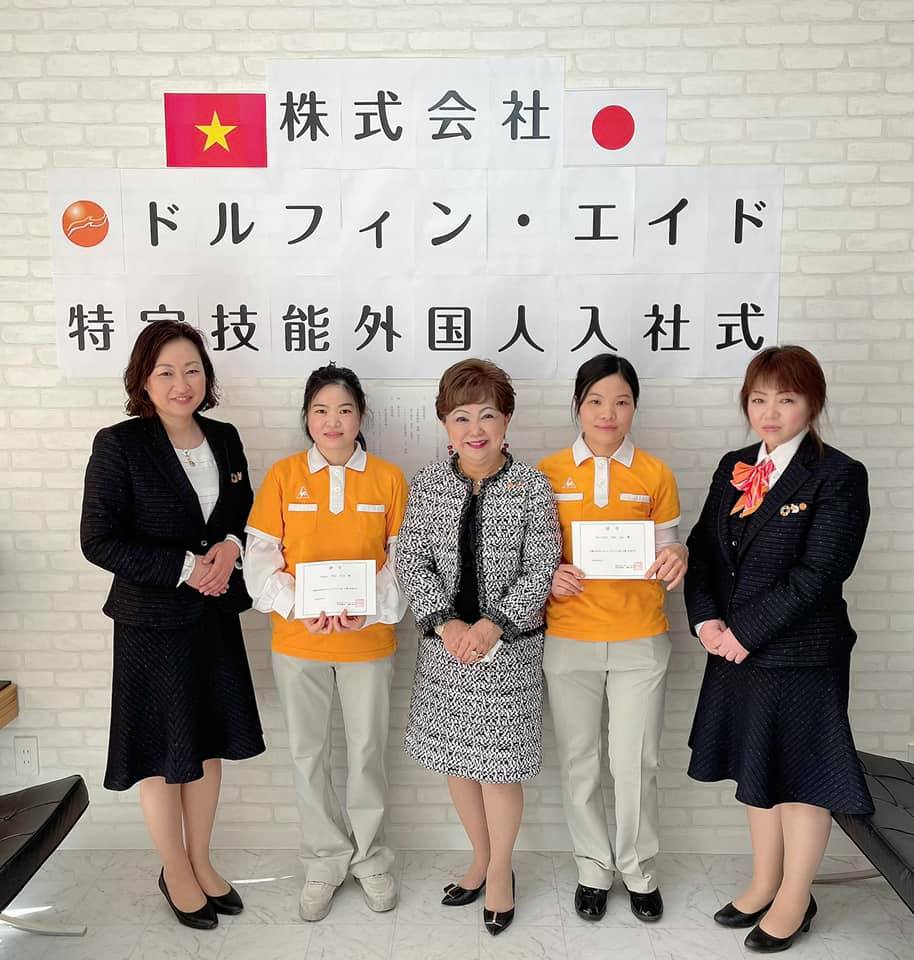 今日は、株式会社ドルフィン・エイドの介護付有料老人ホームドルフィン玉島に、入職した「特定技能外国人」の入社式を行いました。技能実習生として3年間日本で働いたベトナム人です。